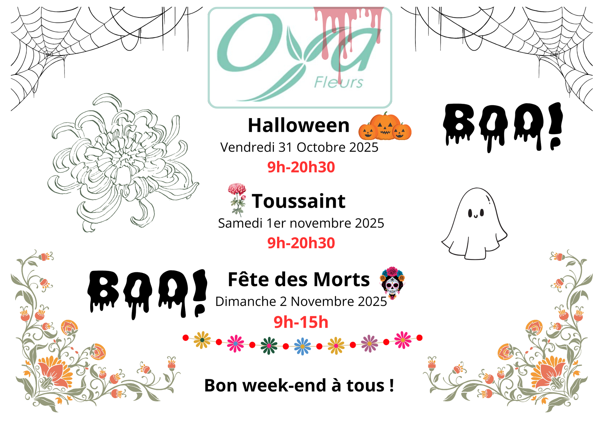 bouquets délicats, compositions de saison et chrysanthèmes aux mille couleurs.