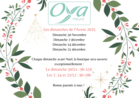 🎄 Horaires spéciaux — Dimanches de l’Avent chez Oya Fleurs Paris