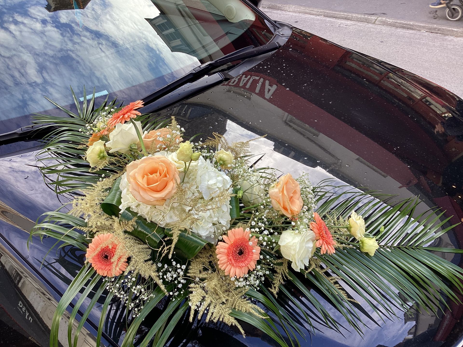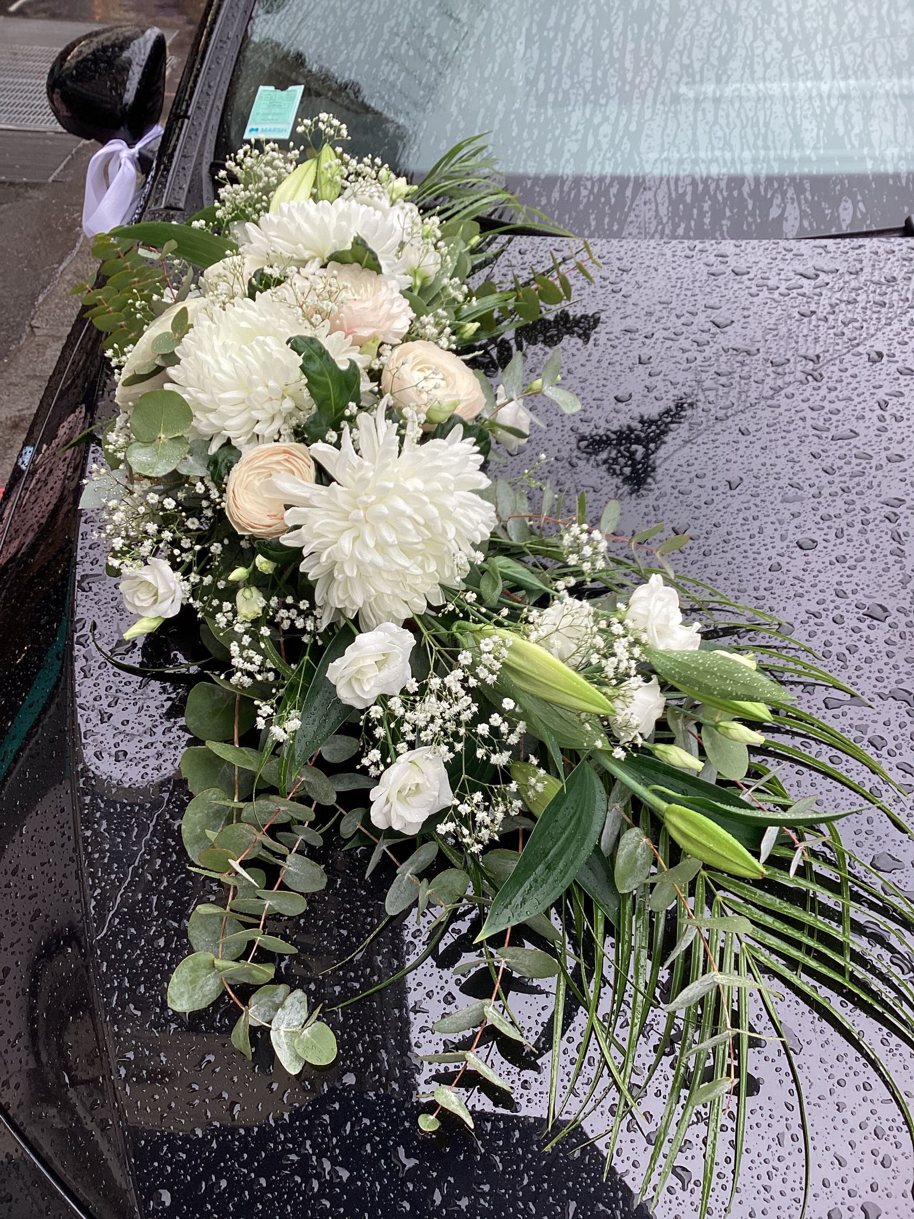 Couronnes de fleurs pour la mariée et les demoiselles d’honneur, boutonnières, bijoux floraux, fleurissement des différents espaces (lieu de la cérémonie, lieu de la fête...), arch fleurie : notre créativité et notre savoir-faire sont là pour retranscrire vos désirs. Nous prenons également en charge la décoration des tables et du capot de voiture de la mariée.